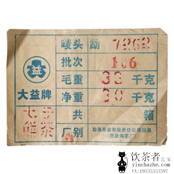 2001年大益 红大益7262 熟茶,勐海茶厂的常规产品,发酵度较低,使用接近宫廷级的金毫细茶撒面,里茶选用3-7级青壮茶菁,大益7262普洱茶的茶汁外观十分美观,汤质柔口味厚。相比大益7572等级更高,香气更佳。90000 0 元 件,克价3元。值得收藏