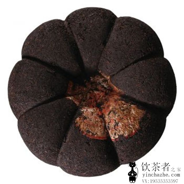 金瓜贡茶也称团茶、人头贡茶,是普洱茶独有的一种特殊紧压茶形式,因其形似南瓜,茶芽长年陈放后色泽金黄,得名金瓜,早年的金瓜茶是专为上贡朝廷而制,故名“金瓜贡茶”。