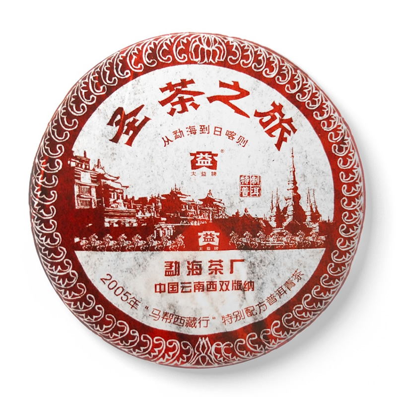 大益圣茶之旅熟饼带全新的激光防伪标志,是为了纪念马帮西藏行(从云南的勐海到西藏的日喀则)的特制产品,采用了特别配方,为勐海茶厂不多见的精品纪念茶之一,很值得收藏。