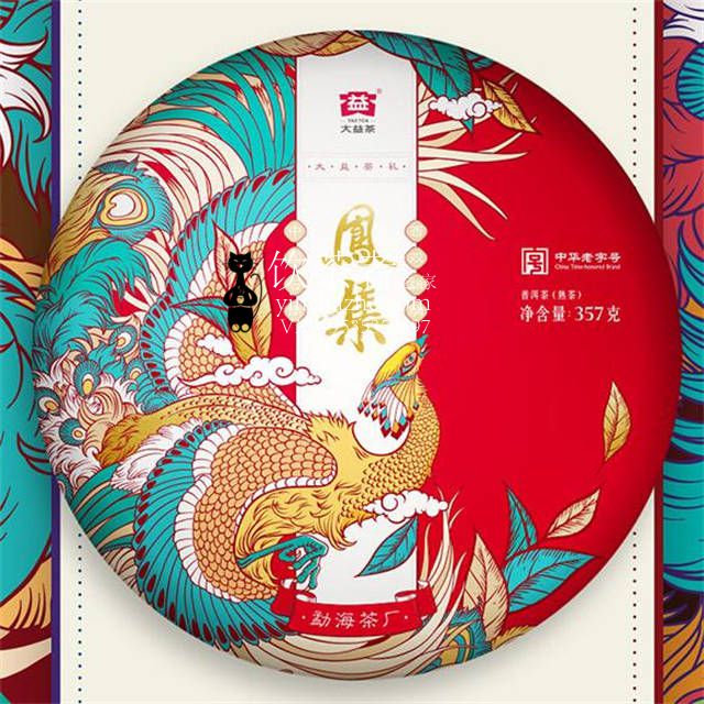 2021年大益 凤集 熟茶 357克,,熟茶,饼面条索清晰,压制松紧适中,茶汤洪浓,回甘生津,入口顺滑清甜,滋味饱满醇厚,鸾鸟凌云而至,凤凰踏云东来。大益鸾翔凤集双礼盒雍容上市,鸾翔青饼礼盒,金黄耀世,富有皇家贵气,以鸾鸟翱翔寰宇之势直飞青冥;凤集熟饼礼盒,朱红华美,尽显堂皇雅态,以凤凰贵胄之姿集聚玮珍。祥云互绕鸾凤,以佳茗引济济俊杰英才,观之礼盒赏心悦目,品之佳茗其乐无穷。