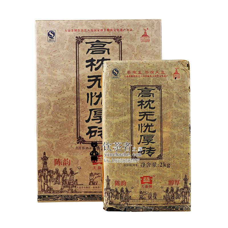 2010年大益高枕无忧厚砖是大益勐海茶厂基于其传统经典配方与工艺,推出该2公斤“高枕无忧”普洱茶熟砖。“高枕无忧”厚砖无论是外形与内质,均承继了1999年2公斤熟砖茶的特色,茶品选用勐海高山地区肥壮茶青为原料,加工工艺独到,历经7年陈化,茶品汤色红亮剔透,滋味醇和甘甜,活性十足,口感饱满顺滑,早已成为广大资深茶友的挚爱。