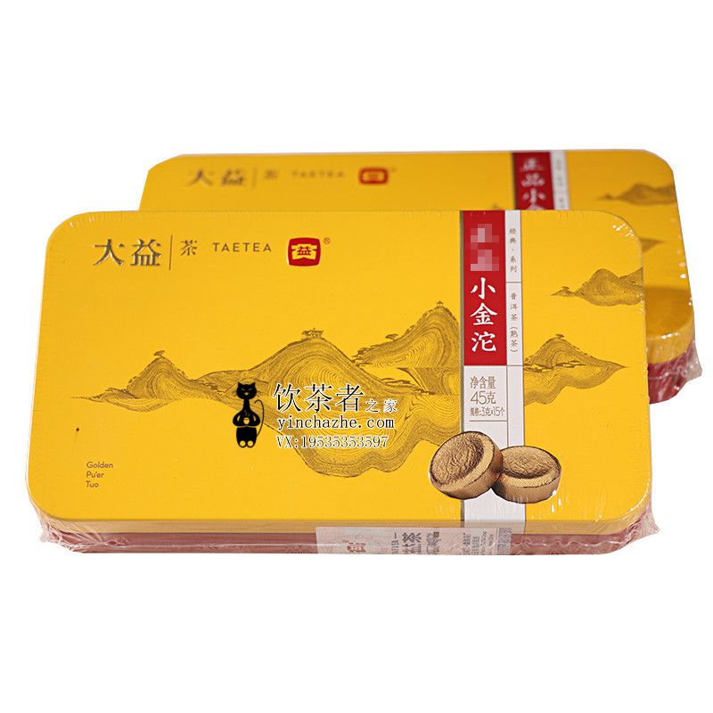 2024年大益 正品小金沱 熟茶 45克 盒,大益新款小金沱熟茶是为办公一族、商务送礼、喜欢便携茶品一族精心研制的迷你沱茶,采用人性化设计,精致,每一坨形如巧克力,用金色锡箔纸包装,一粒=1泡,冲泡方便,出汤快,滋味醇香!!一次一颗方便实惠,不论居家、旅行或者办公室,都能轻松喝到普洱。