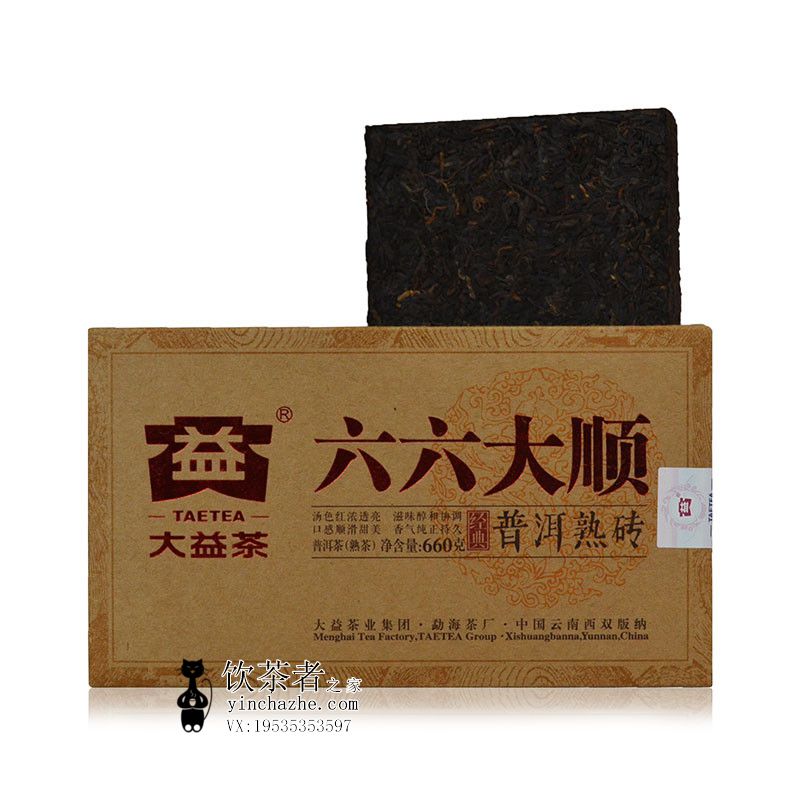 2016年大益 六六大顺(66大顺) 熟茶 660克 砖,嫩梗是初涩青春的开始,每一个人都是从青涩少年到中年,这嫩梗是初春芽头下一枝杆,正是因为有它才有芽叶的迷人芳香。精选6-8年老叶和1-3年嫩梗来拼配,老叶是光阴的故事,是岁月沉淀给茶的瑰宝,老叶也是象征,象征6位老茶人,他们甘当那老叶,用自身的传奇来铺就一款经典茶品的诞生;