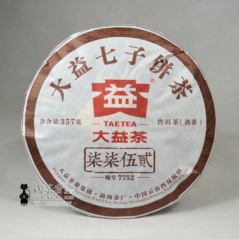 2016年大益 7752 1601批 熟茶 357克 饼,7752,1601批次是2016年勐海茶厂出品,勐海茶厂大益7752的意思,即:“77”是指采用77年研制的配方,“5”是5级茶料,“2”则是勐海茶厂的代号,意为勐海茶厂生产的。