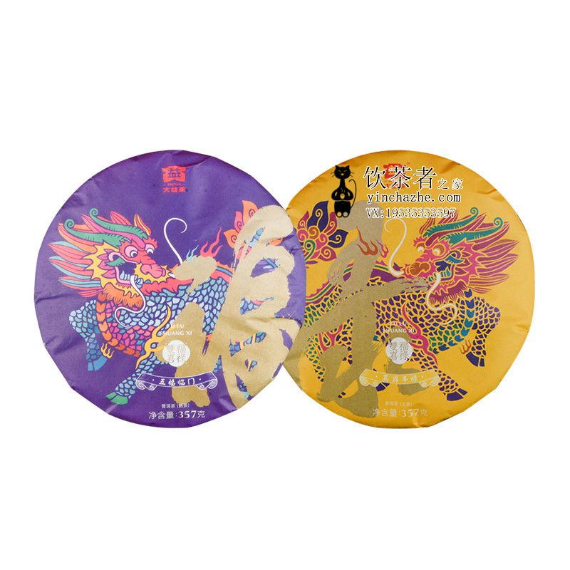 大益福禄双喜生茶,精选云南大叶种晒青茶为料,采用国家非物质文化遗产“大益茶制作技艺”加工而成。