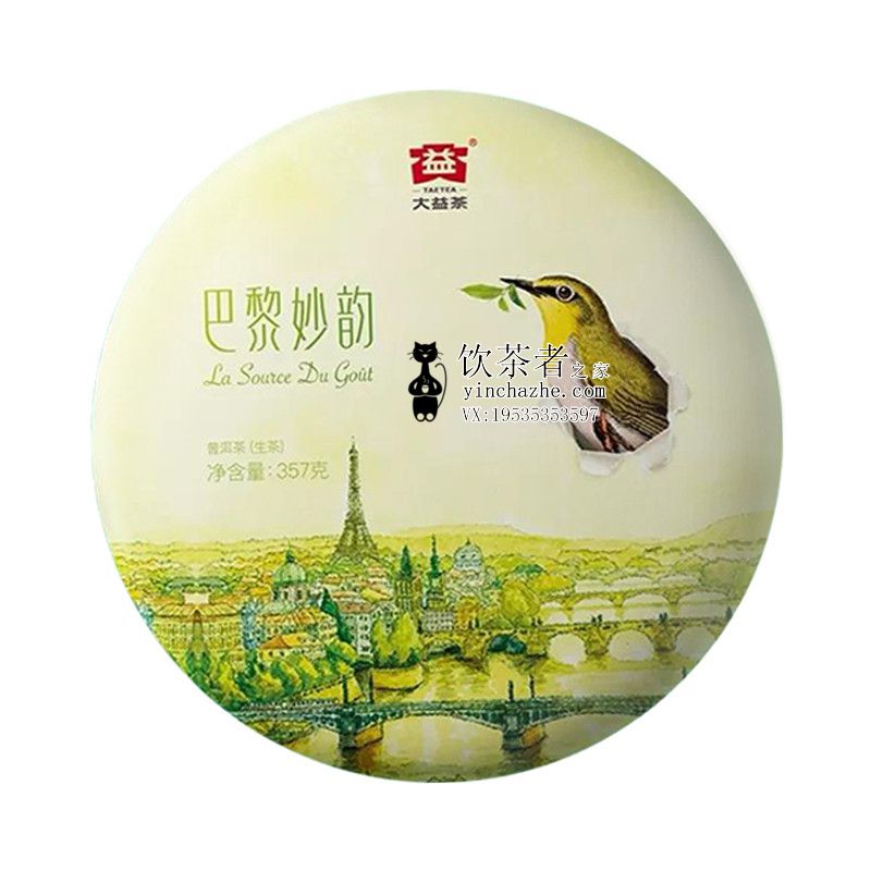 2018年大益 巴黎妙韵 1801批 生茶 357克 饼,精选勐海著名高山茶区云南大叶种毛茶为原料,经入选国家级非物质文化遗产名录的“大益茶制作技艺”精制而成。象征幸福美满的青鸟,携普洱茶叶,化身文化使者,将东方风雅神秘的信息带向全世界。中国寄情于清茶中,见山见水见世界的美学精神,与西方“诗意栖居”的向往一起,传递着人们跨越时间、跨越国界的共同理想。巴黎妙韵,带着大益与法国的百年渊源,在国内正式上市。