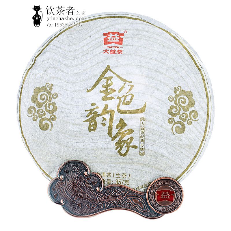 金色韵象,大益301批金色韵象青饼用料精良,以选用自然纯干仓陈化的老茶菁为精心拼配而成。茶饼端正,饼面撒面均匀,条索清晰,茶饼厚薄均匀,茶品色泽乌润显芽毫,叶底匀齐。汤色金黄,滋味浓厚,陈韵悠悠,浓醇馥郁,口感厚滑回甘。干茶:茶面色泽青黄微褐,油润有光泽,显暗金毫;茶莆条索紧实,嫩度适中,饼形周正稍紧结。