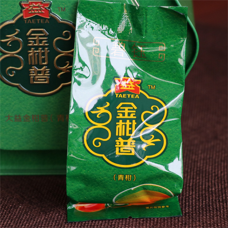大益金柑普青柑 碧钰|采用具有“千年人参,百年陈皮”之美誉的“中国陈皮之乡”的新会柑与大益普洱茶为原料,经拼配工艺加工而成。大益金柑普青柑 碧钰融合了云南普洱茶特有的醇厚、甘香、爽滑之韵,与新会柑清醇的果香之味,两者相互吸收,相互融合,互为表里,从而形成了风味独特,韵味十足的大益金柑普。