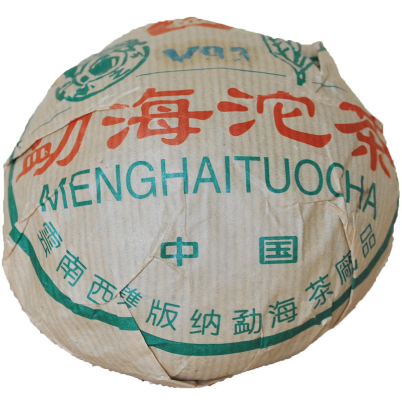 2005年大益 v93 生茶 250克 沱,2005年大益V93,经典生茶,大益V93普洱沱茶,是勐海茶厂的新产品,外形小巧精致,松紧适宜,条索紧结匀齐而完整,不似饼茶条索纠结甚或模糊。选料精细,一流技艺,宜品宜藏,品质上乘,勐海茶厂出产的沱茶数量并不多,V93更是少之又少,因为这款茶用料级别较高,而且青毛茶仓贮陈期、发酵后的存放时间都相当长。