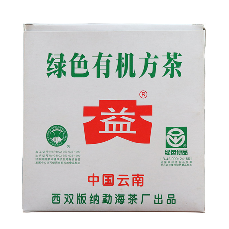 2004年大益绿色有机方茶,选用经中国国家环保局有机食品发展中心和国家绿色食品发展中心认证的基地茶叶原料,采用生态种植技术,未施用任何化学肥料及药剂,严格按照有机及绿色食品标准生产,由经验丰富的制茶师傅适度发酵、高温蒸压而成。砖茶品形端正,松紧适度、金毫显露,为勐海茶厂当年的经典性代表之作。