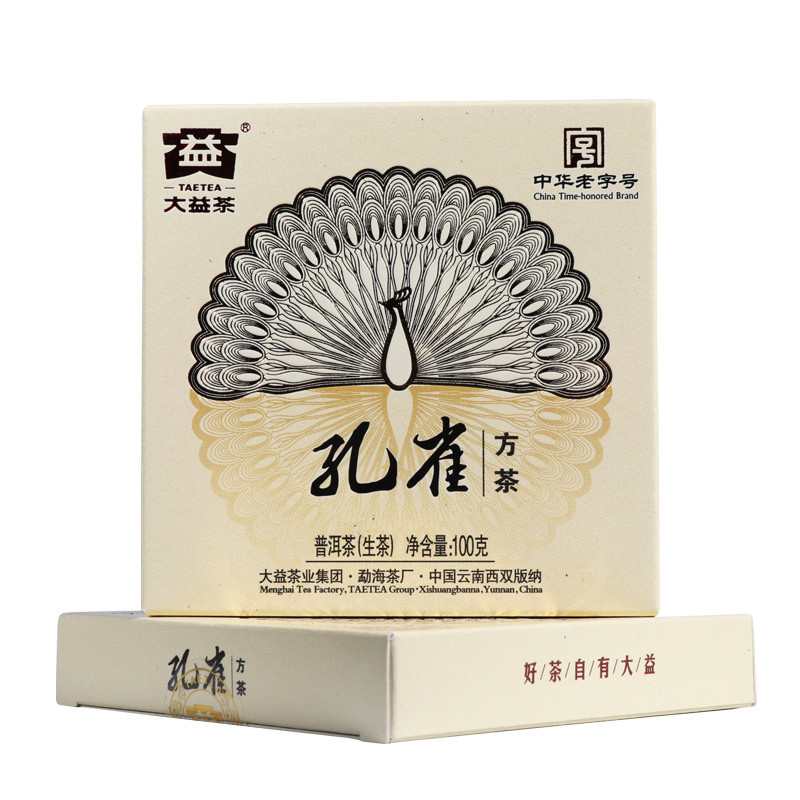 大益孔雀方砖是由经销商定制的一款茶,茶为100克一砖,一盒里面有10小砖,包装精美而大方,看茶似乎有两三年的茶料在里头。滋味醇厚饱满,口感细腻柔和,回甘持久,香高悠远