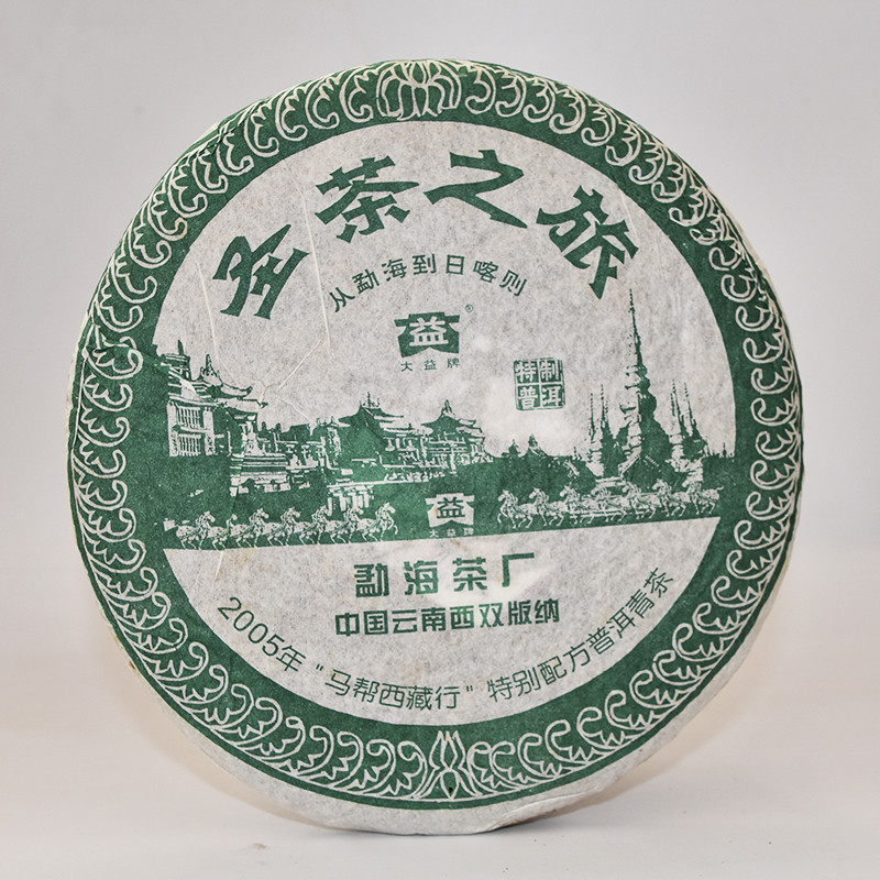 2006年大益 圣茶之旅 生茶 400克 饼,本产品为勐海茶厂佛缘茶系列之一,为纪念马帮西藏行(从云南的勐海到西藏的日喀则)的特制产品,原料精选自云南西双版纳勐海茶区,依传统工艺晒、揉、蒸压制而成,条索紧结,银毫密布,不洒面,表里如一;汤色金黄透亮,回甘生津,茶汤入口甘醇顺滑,回甘舒服持久,是一款茶中的醇品。