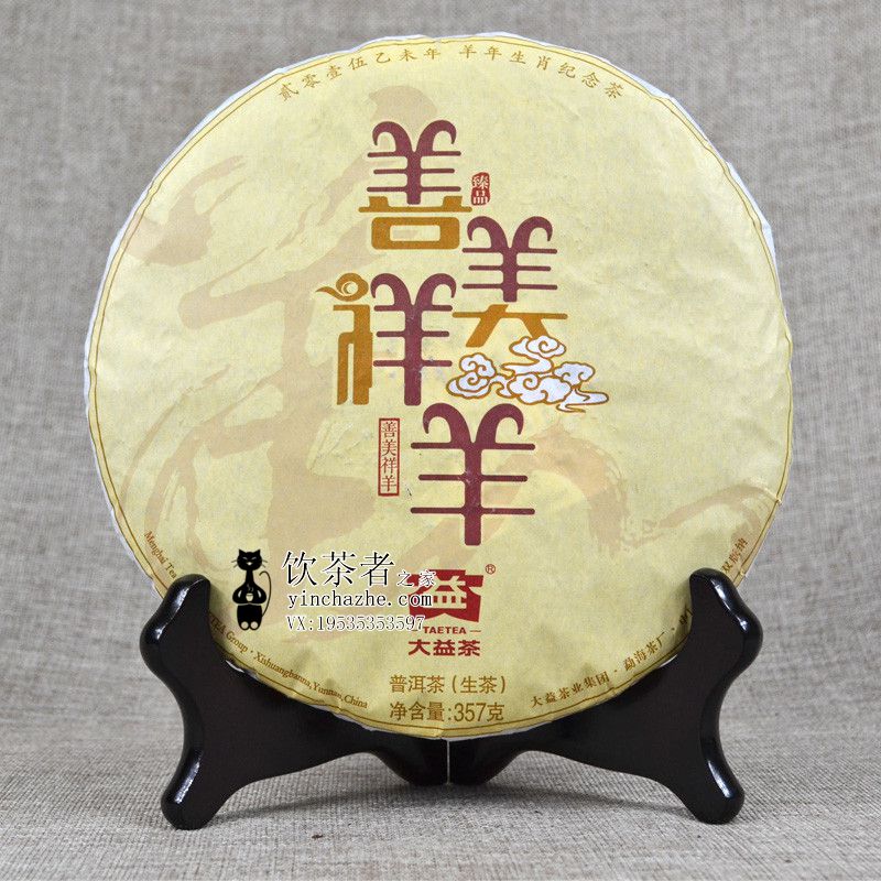 2015年大益 善美祥羊 1501批 羊年生肖纪念茶 生茶 357克/饼
