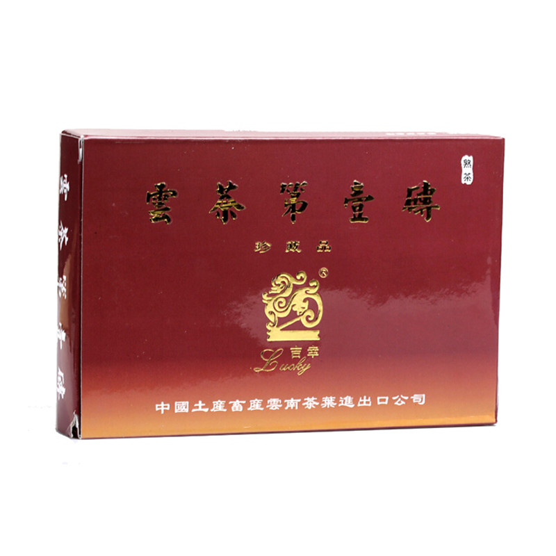 云茶第一砖”是中国土产畜产云南茶叶进出口公司继“云茶第一饼”之后,应全体云茶人和热衷于普洱茶收藏的各界同仁的要求,经精心设计而成的。“云茶第一砖”选料精良,造型优美。汤色红艳明亮,香气陈香芬芳,韵味醇厚甘甜,是馈赠亲朋好友之上等佳品。