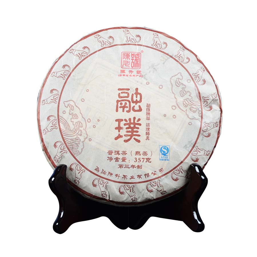 2018陈升号熟茶“融璞”(第三年制)这是一款用西双版纳大树茶发酵的熟茶,条索紧结,芽叶鲜明,匀净无杂质,同时也是老料新压,完全褪去了新熟茶时期的渥堆味,把最好的口感呈现给消费者!汤色红浓明亮,饱满剔透,茶香纯正馥郁,滋味顺滑、浓厚回甘,陈韵显著;叶底红褐,色泽均匀,韧性足,茶叶内含物质丰富,耐泡度高。融汇精华,返璞归真用西双版纳大树茶发酵的熟茶。条索紧结,芽叶鲜明匀净无杂质老料新压完全褪去了新熟茶的渥堆味。汤色红浓明亮,饱满剔透茶香纯正、馥郁,滋味顺滑浓醇回甘,陈韵显著。叶底红褐,色泽均匀有韧性茶叶内含物质丰富耐泡度极高。