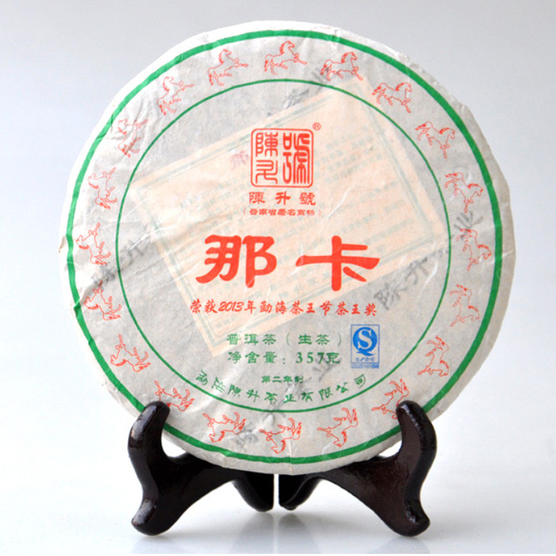 2014年陈升号 那卡 生茶 357克 饼,陈升号那卡精选勐海那卡茶山优质茶菁为原料,纯手工精制而成。饼型圆整,条索紧结黑亮,银毫显现,茶汤金黄透亮,香气馥郁持久,质优柔滑,茶韵清幽,回甘显著,余韵悠长,回味无穷,是一款“品味”与“品位”相得益彰的普洱茗品。