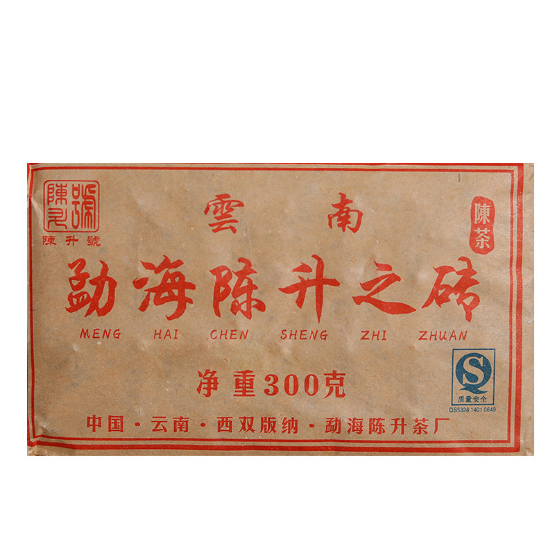 2007年陈升号 勐海陈升之砖 熟茶 300克 砖,陈升之砖条索紧接:汤色栗红透亮:滋味醇厚甘润,陈香纯正,久泡不衰:叶底呈黑褐色,油润有光泽。原料精选云南勐海大叶种晒青毛茶,严格按照传统工艺,经优选、分级、渥堆、发酵,蒸压时均用石模压制而成。经过12年陈化熟茶,在岁月的沉淀下已褪去浮躁,使得这款茶滋味语法醇和,陈香优雅然:随泡数递增,陈香愈发明显,茶性温和,是养生茶的不二之选。
