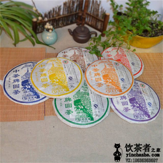中茶牌圆茶七彩孔雀(生茶),每饼七两(357g),每提七饼,七饼七色彩,分别为红、黄、咖、蓝、橙、紫、绿,七彩七孔雀。一提普洱茶,打开一看,有七饼不同颜色的孔雀饼,确实令人心情顿时愉悦。孔雀本以美丽著名,彩色的孔雀更是添加光彩,相当吸引眼球。